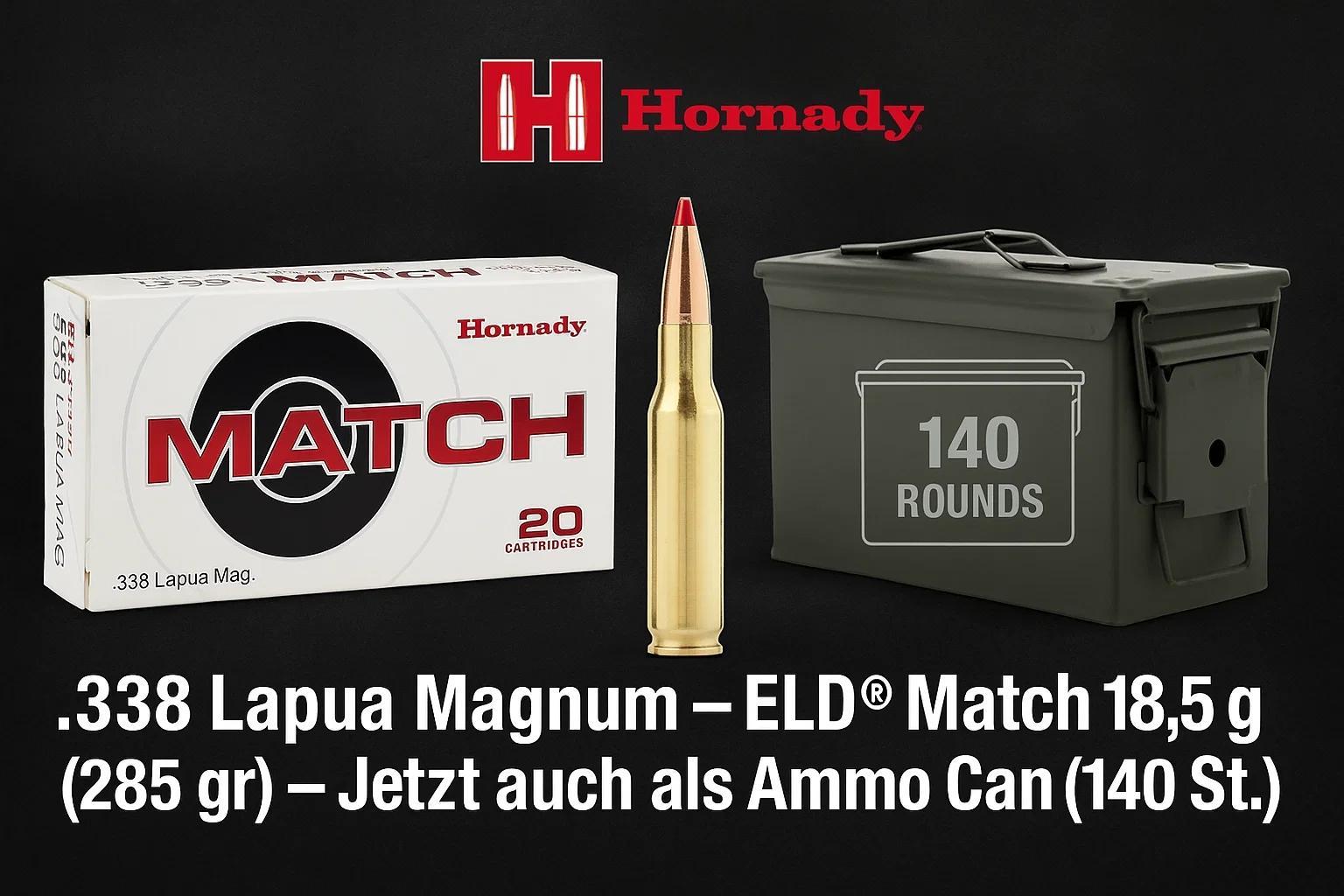 🎯 Hornady .338 Lapua Magnum – ELD® Match 18,5 g (285 gr) — jetzt auch als Ammo Can (140 St.)