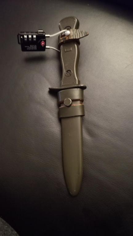 Wäre dieses Kurzschwert denn in einer im Auto festmontierten und abschließbaren (Zahlenschloss?) Halterung legal mitzuführen?